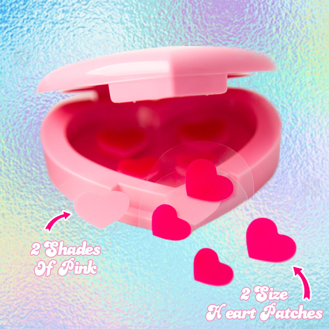 CONTAINS: 32 Hydrocolloid Pimple Patches in two shades of pink. Patches come in large and small sizes. Heart Shaded Mirror.